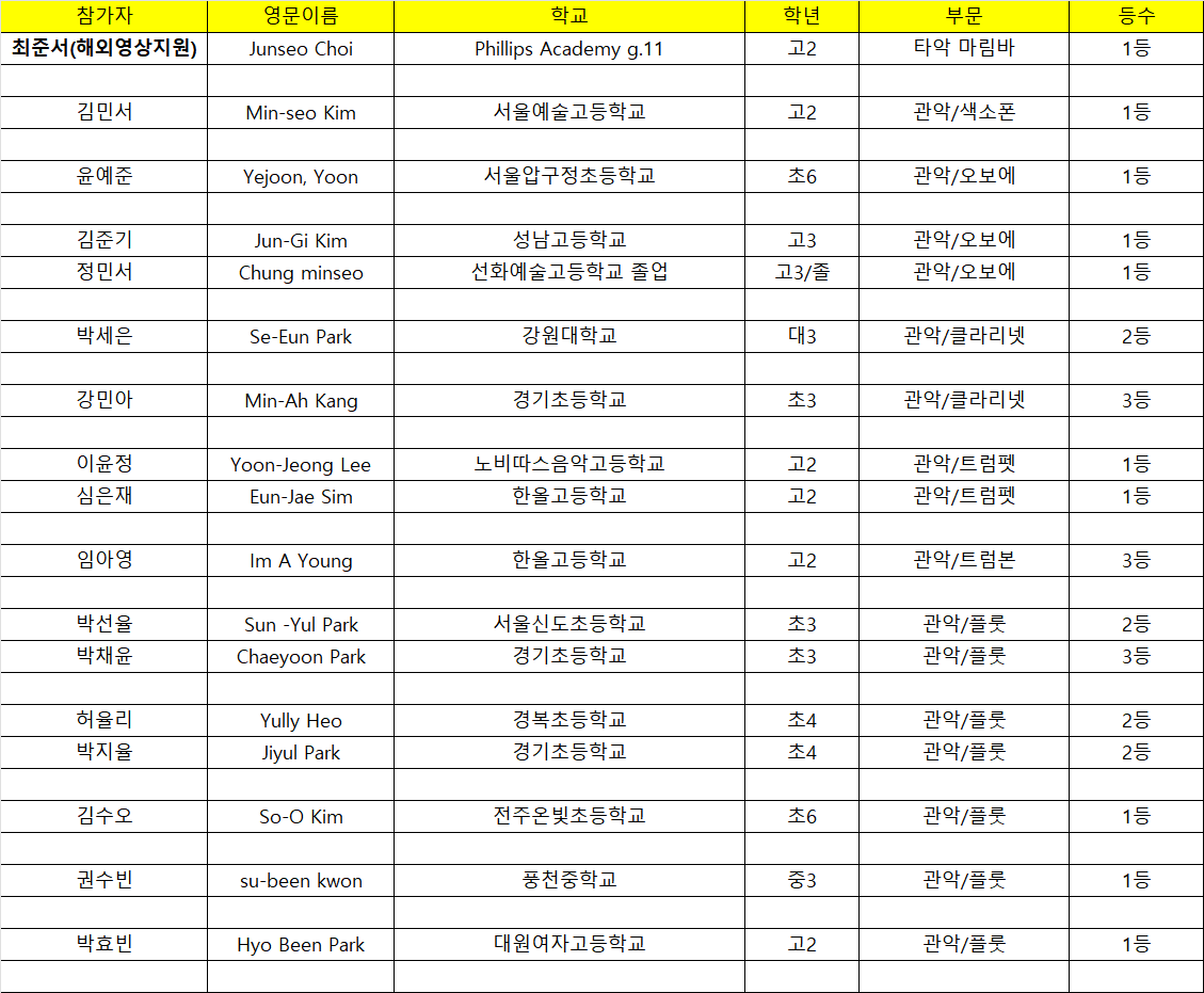 입상결과(한음음악콩쿨)
