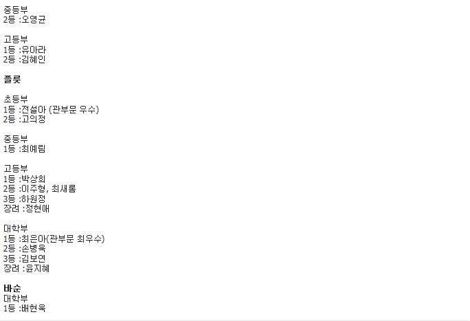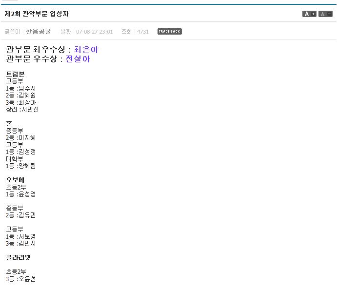 입상결과(한음음악콩쿨)