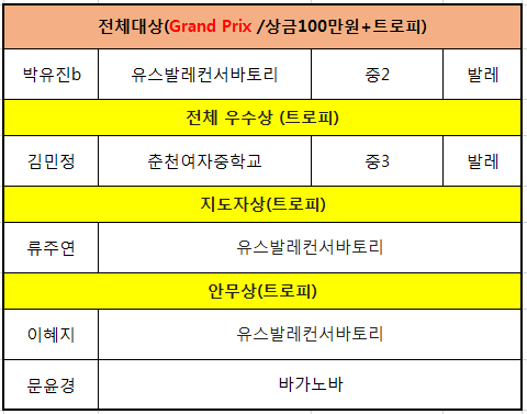 자세한 콩쿨결과는 상단메뉴 입상결과를 참조 바랍니다.