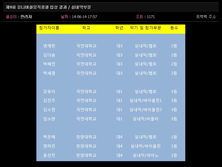 입상결과(유니버셜뮤직콩쿨)