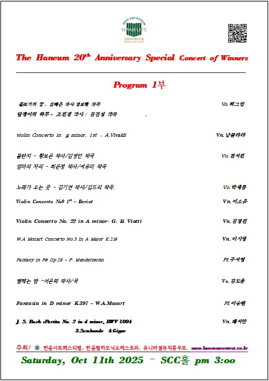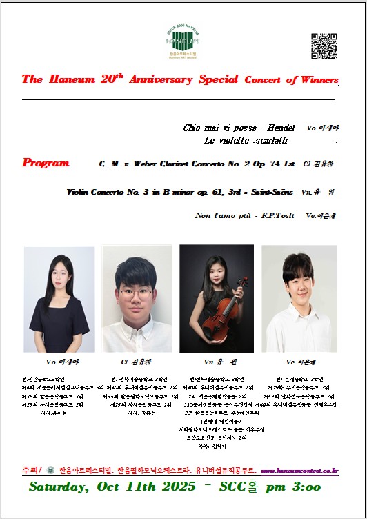 연휴 중에도 이 뜻깊은 무대를 빛내 주기 위해 함께해 주신 연주자와 학부모님,