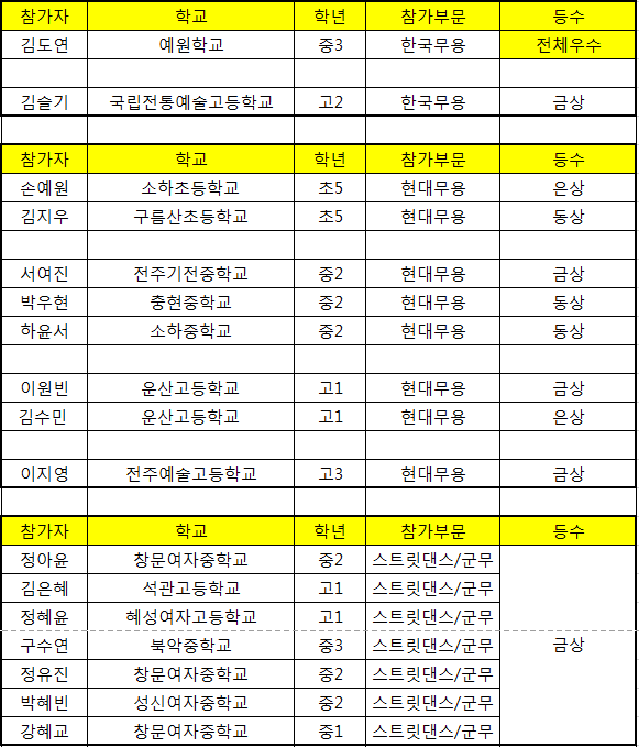 제18회 한음무용콩쿠르 한국무용. 현대무용. 스트릿댄스 입상결과