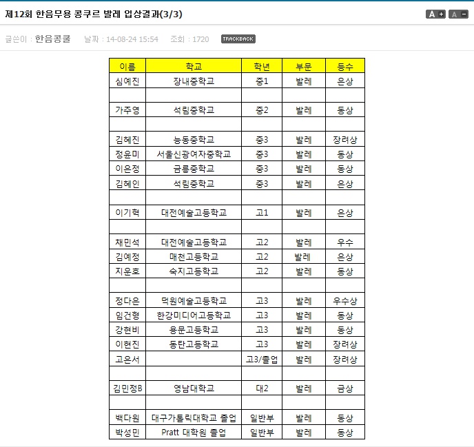 제12회 한음무용 콩쿠르 발레 입상결과(3/3)