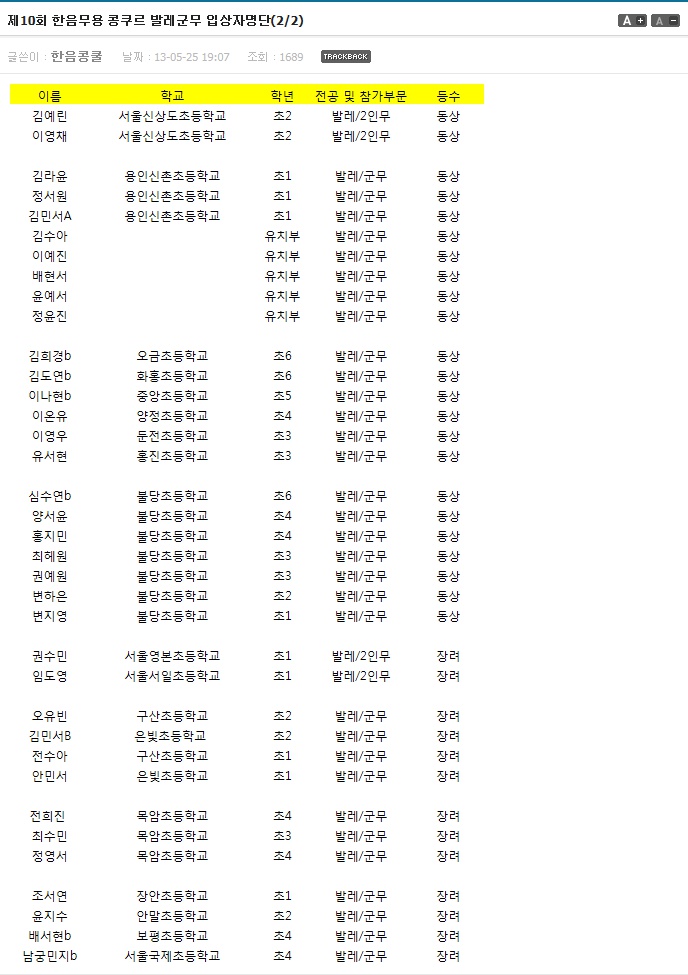 제10회 한음무용 콩쿠르 발레 입상자명단(1/4)