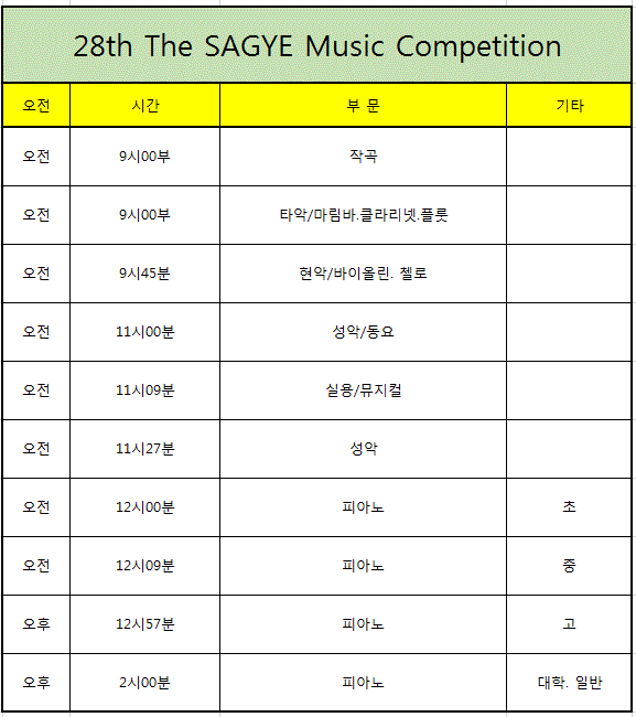 ▶ 콩쿨 결과는 www.haneumcontest.co.kr 에서 확인가능하며, 모바일 앱 "한음" 다운받으셔서 가능합니다. (당일 오후11시 이후 발표)